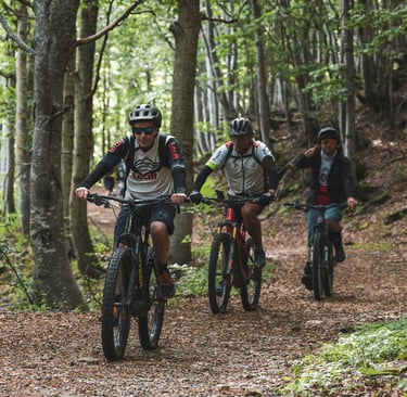 L’escursione è pensata per biker con poca preparazione fisica e tecnica, ma offre più varianti, così da adattarsi a diverse esigenze di tempo e chilometraggio, mantenendo sempre lo stesso spirito.